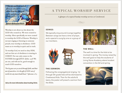 Creekwood Baptist Church is a place where people can meet Jesus, engage in life-giving community, and everyone is welcome. We believe in creating a space where people can have authentic encounters with Christ, discover their gifts and use them for God's glory. Join us for our Sunday services!